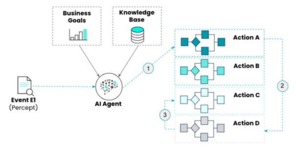 Figuur 6: AI Agent Dynamically Orchestrates Actions To Respond to Event E2.